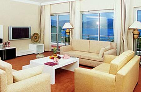 - 5 villa king suites (120 м2, sea view, двухуровневые, гостиная с рабочим уголком, 2 спальни, кухня, межкомнатная дверь, факс, принтер, 3 ТВ, DVD, CD, 2 ванные комнаты, бассейн, терраса, макс. 4 чел.)
