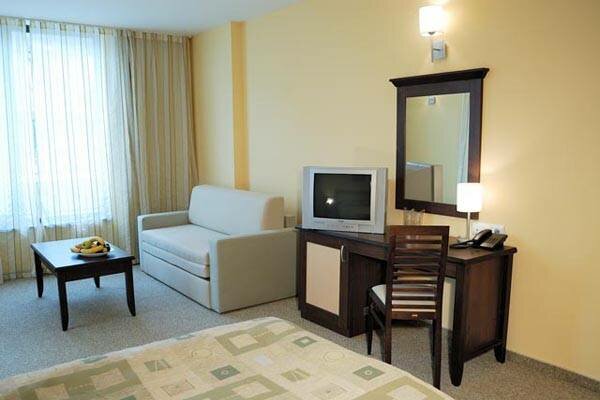 Отель открыл свои двери для гостей в начале июля 2005 г. Состоит из нескольких современных стильных зданий. Отель располагает открытым бассейном с детской секцией (шезлонги и зонтики – бесплатно), салоном красоты и массажным кабинетом. В ресторане отеля сервируют “шведский стол” на завтрак и ужин, а также подают меню из отменных деликатесов. Кроме ресторана, в отеле есть лобби-бар и бар у бассейна, которые предлагают прохладительные напитки, экзотические коктейли и легкие блюда в течение всего дня до позднего вечера. Для деловых людей отель предоставляет полностью оснащенный конференц-зал (на 100 человек) и бизнес-центр (доступ в интернет и др.). Прочие услуги в отеле: рецепция, обмен валюты, сейф (на рецепции), прачечная, утюжка белья, парковка. Расположение: Комплекс расположен в самом центре курорта Солнечный берег, в 200 м от пляжа, в 5 минутах ходьбы от магазинов, ресторанов, баров и ночных развлекательных заведений. В отеле: 235 номеров трех категорий: Standard Room, Family Room, Apartment. В номере: балкон, ванна/душ, фен, центральный кондиционер, центральное отопление, телевизор со спутниковыми каналами, телефон, мини-бар. |